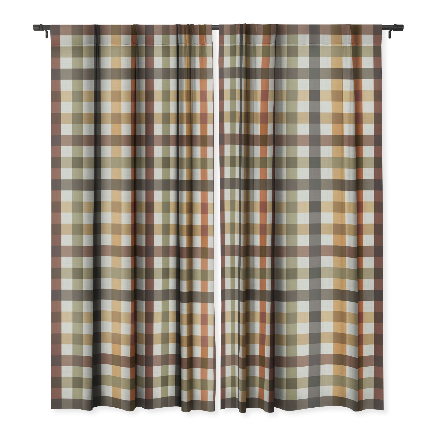 Ninola Design Multicolored Gingham Rustic Ginger Blackout Window Curtain