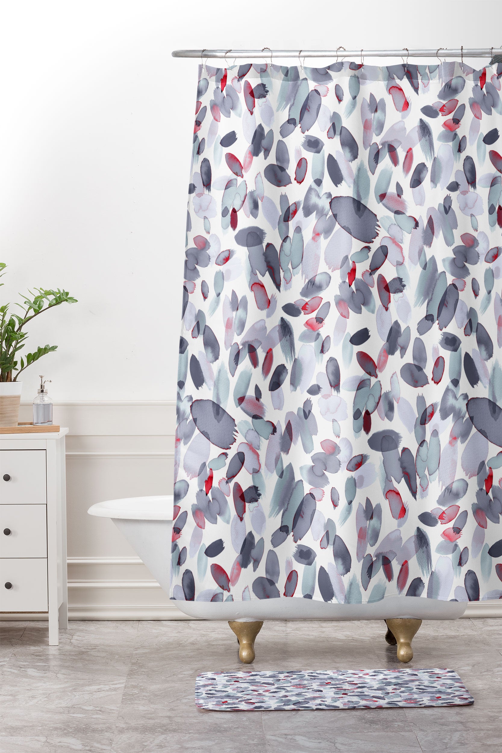 Ninola Design Petal Stains Gray Shower Curtain And Mat