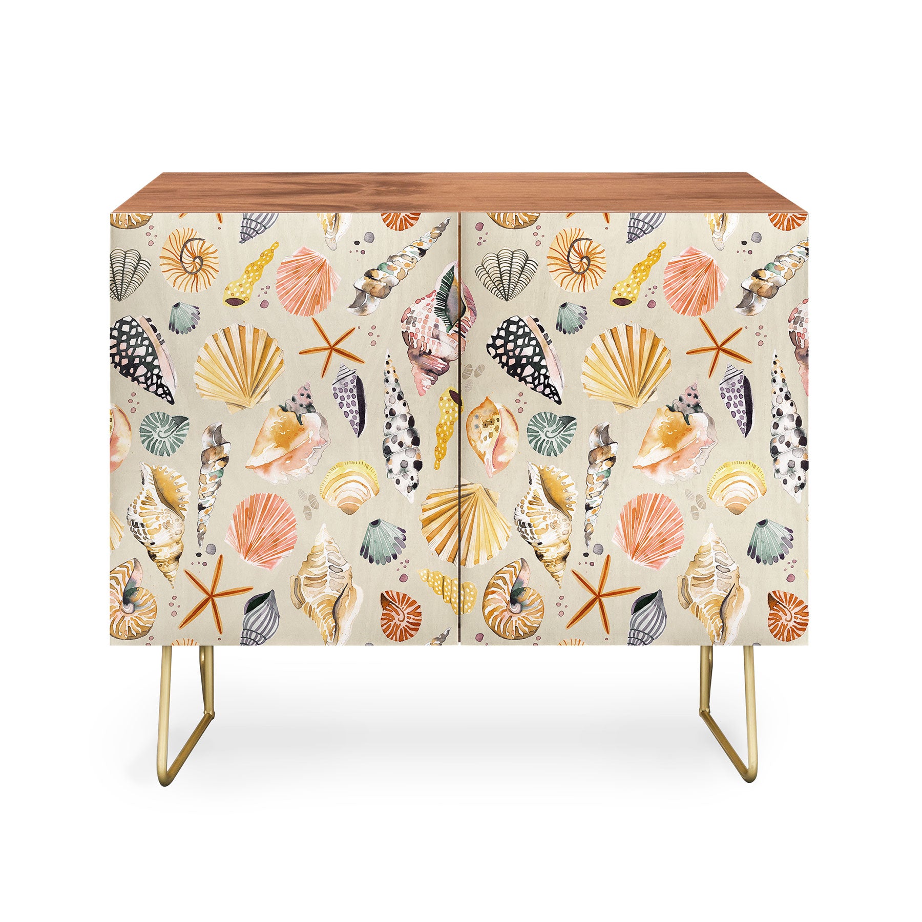 Ninola Design Sea Shells Ocean Marine Coastal Sand Credenza
