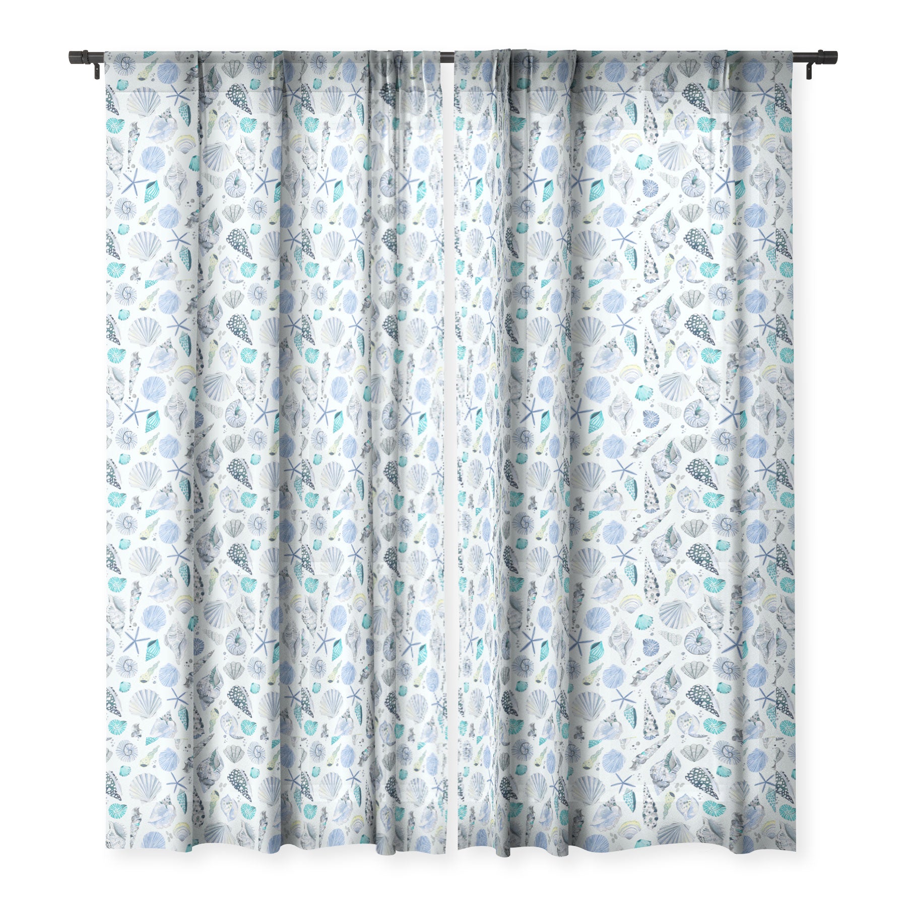 Ninola Design Sea shells Soft blue Sheer Window Curtain