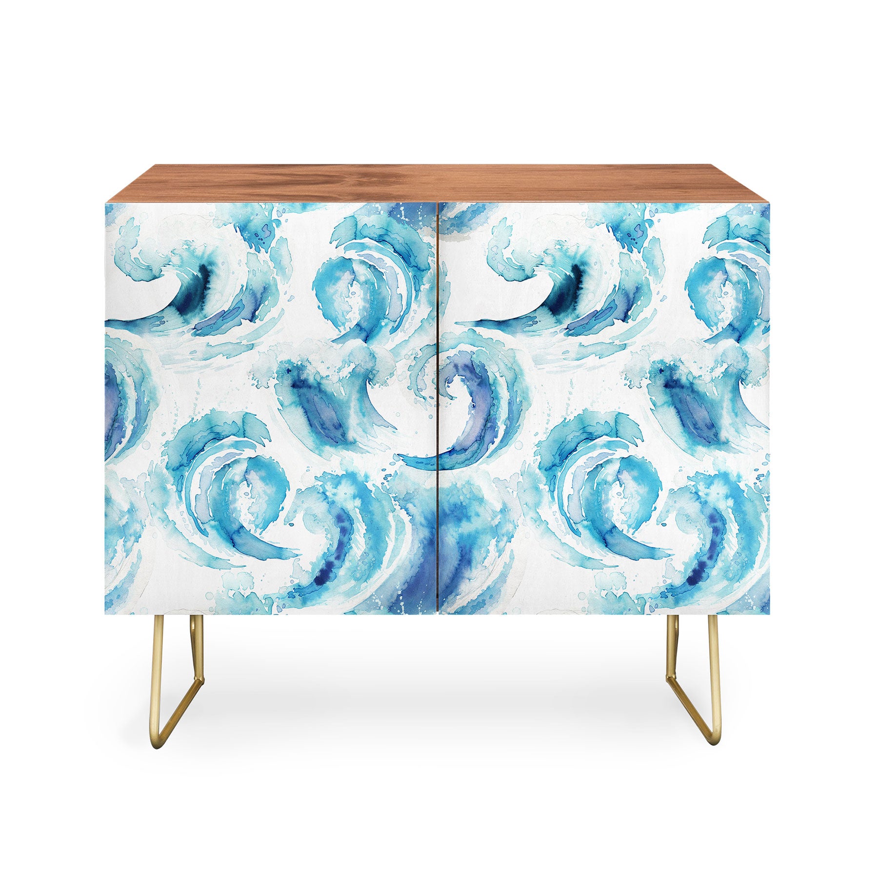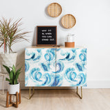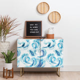Ninola Design Sea Waves Blue Coastal Marine Watercolor Credenza