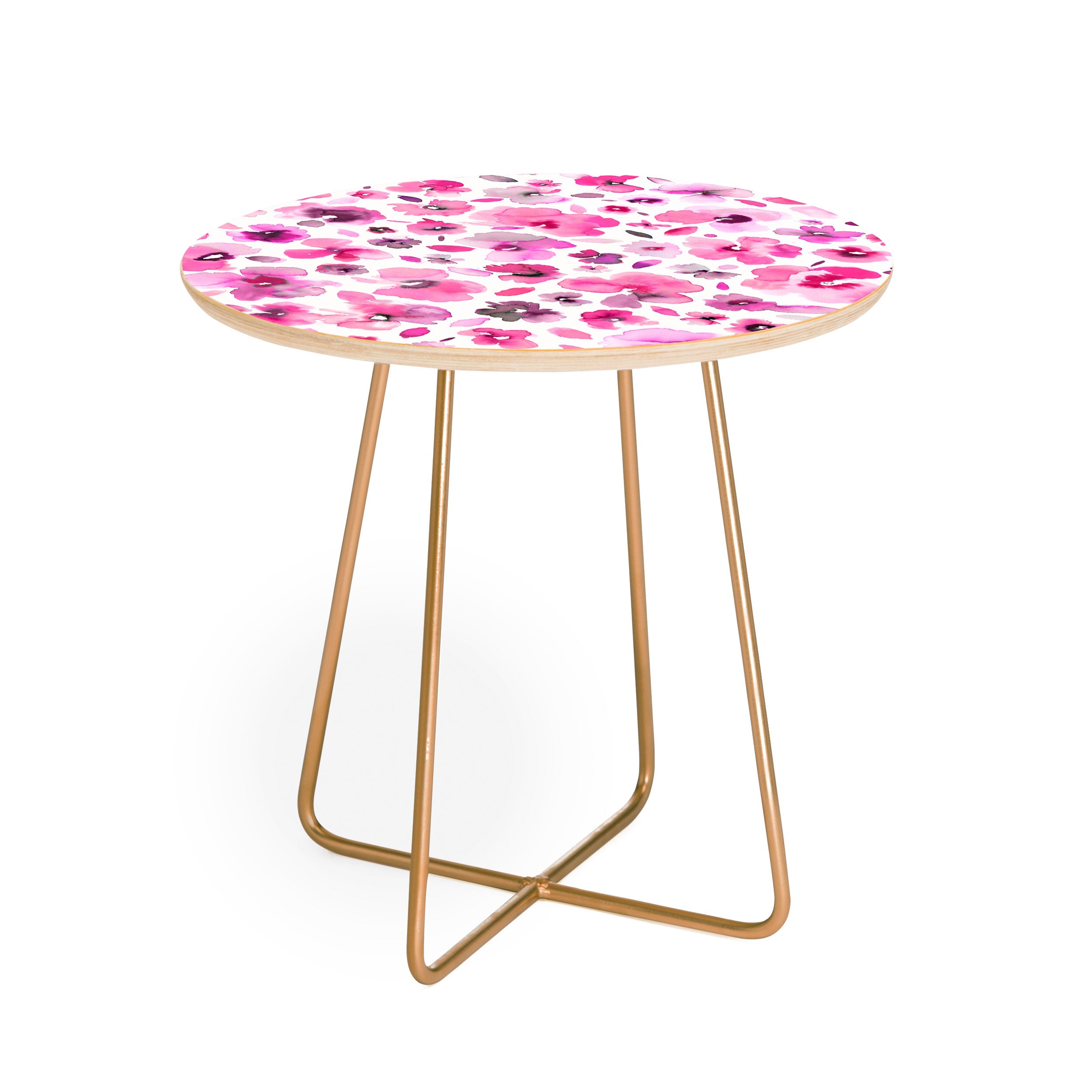 Ninola Design Tropical Flowers Watercolor Pink Round Side Table