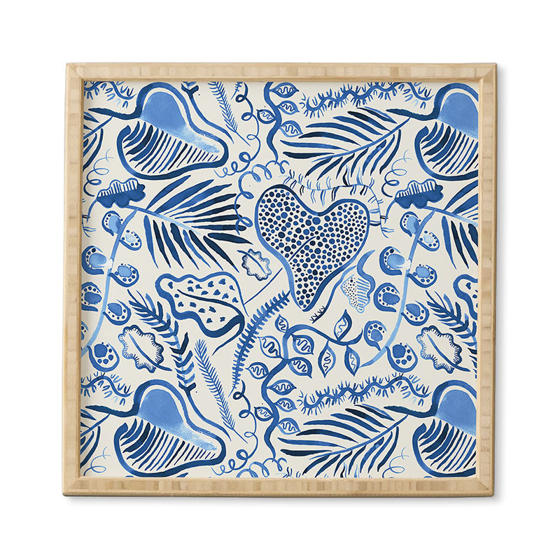 Ninola Design Tropical Forest Leaves Blue Framed Wall Art