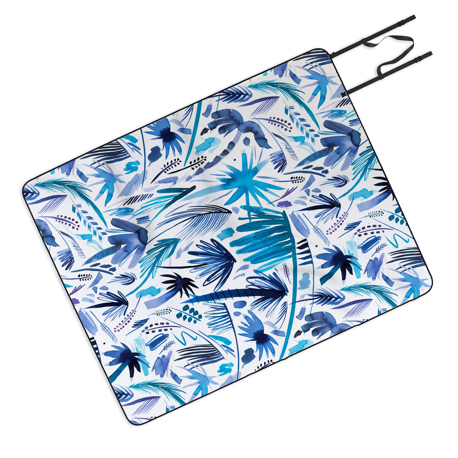 Ninola Design Tropical Relaxing Palms Blue Picnic Blanket