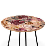 Ninola Design Vintage Peonies Beige Burgundy Round Side Table