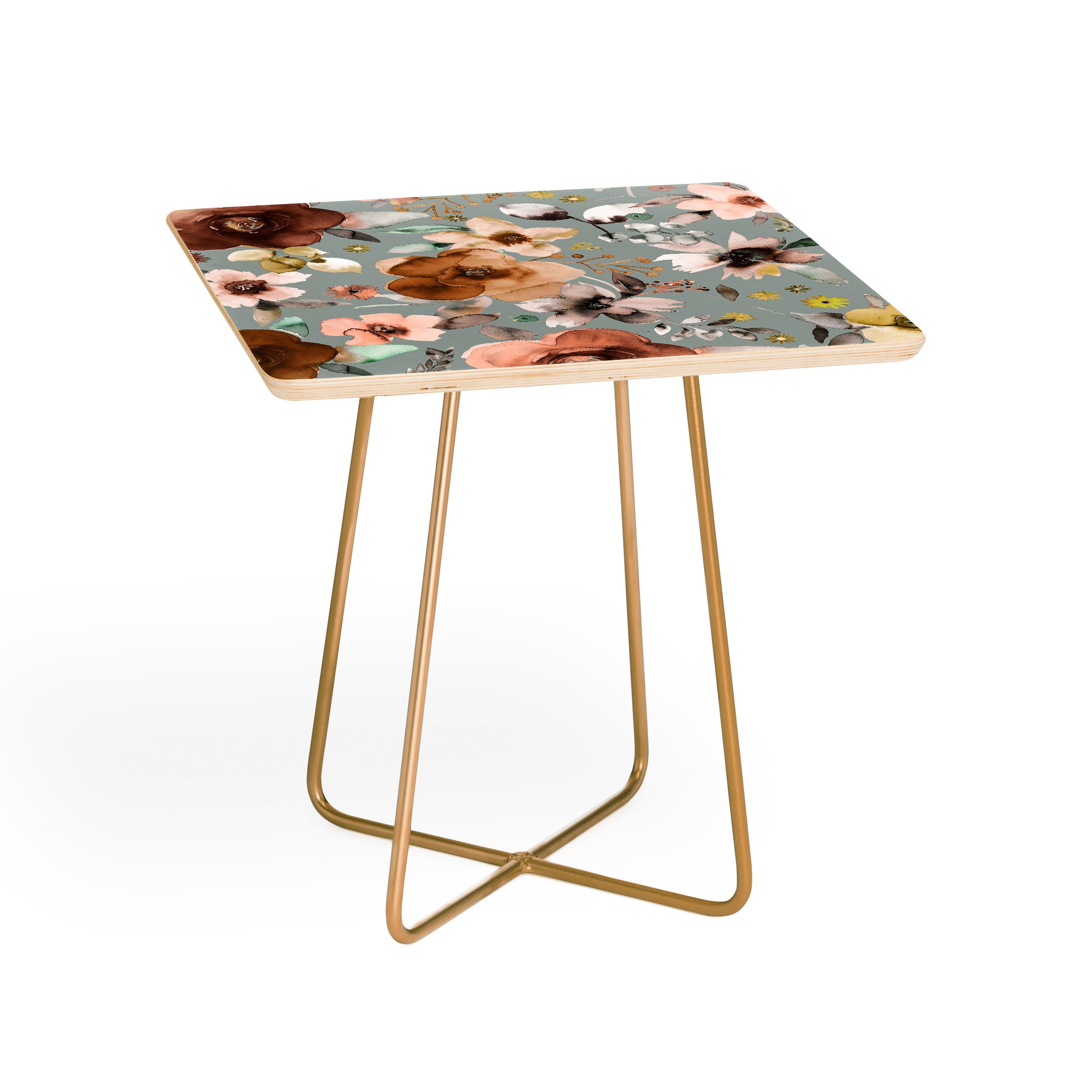 Ninola Design Watercolor flowers bouquet Natural Side Table