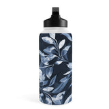 Ninola Design Watercolor Leaves Blue Navy Water Bottle