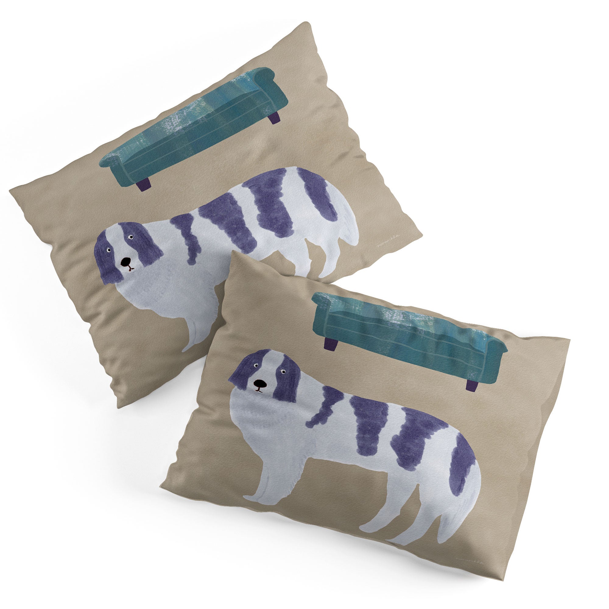 norarikka Dog and a Sofa Purple and Beige Pillow Shams