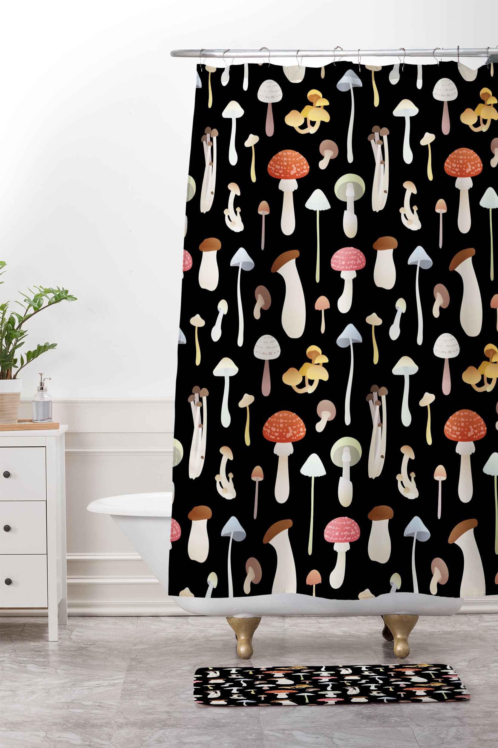 Noristudio Dreamy Mushrooms Pattern Shower Curtain And Mat
