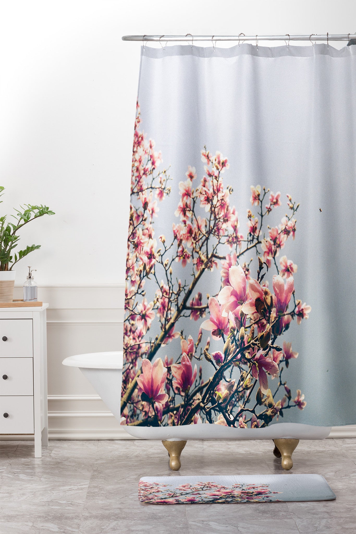 Olivia St Claire Pink Magnolia Shower Curtain And Mat
