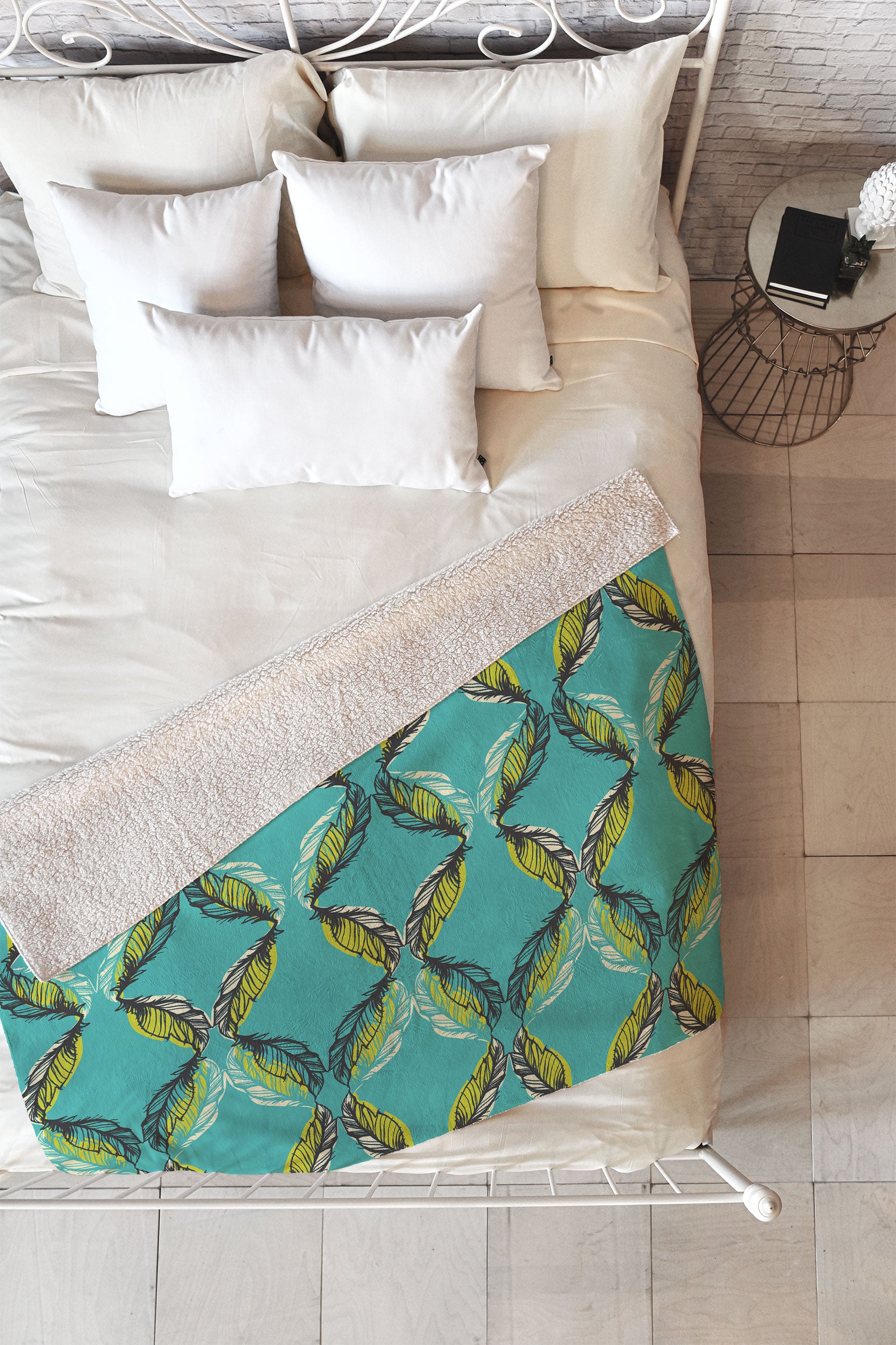 Pattern State Feather Aquatic Fleece Throw Blanket