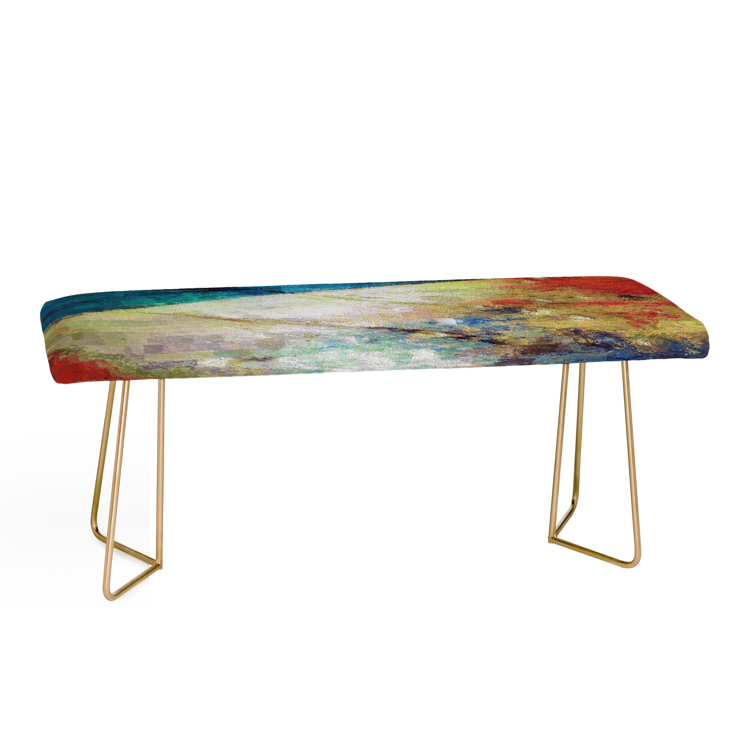 You may now approach the bench. The Deny Designs bench is the versatile furniture staple your space is missing. You can select from our curated designs to be featured on the wrapped, faux-leather seat. The sturdy yet minimalistic steel aston legs, available in gold or black, allow our benches to be seamlessly integrated into whatever decor style you fancy. Dress it up as chic dining room seating or dress it down as an entryway catch-all. And the best part? Every purchase pays the artist who designed it—supporting creativity worldwide.