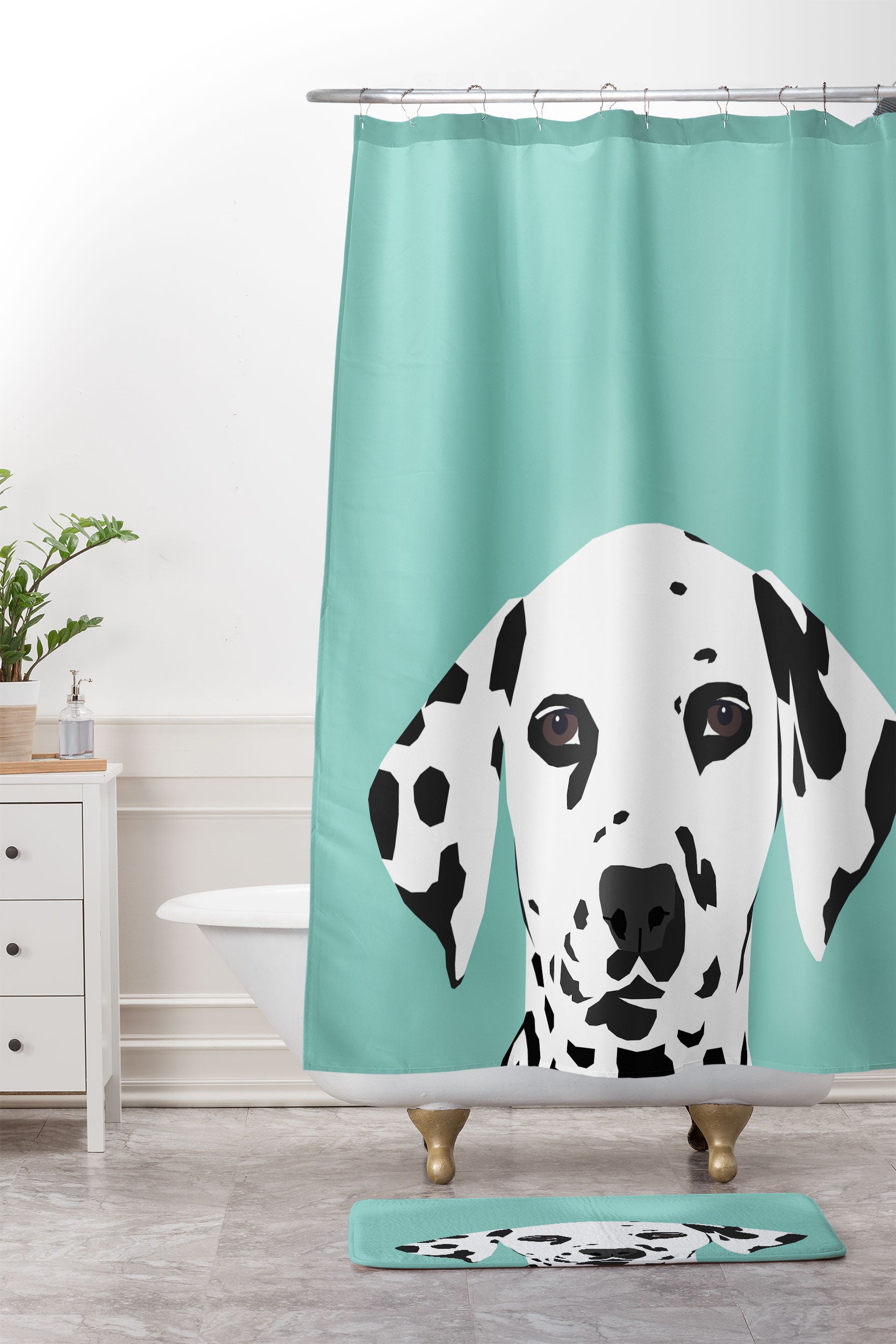 Petfriendly Dalmatian cute puppy dog black Shower Curtain And Mat