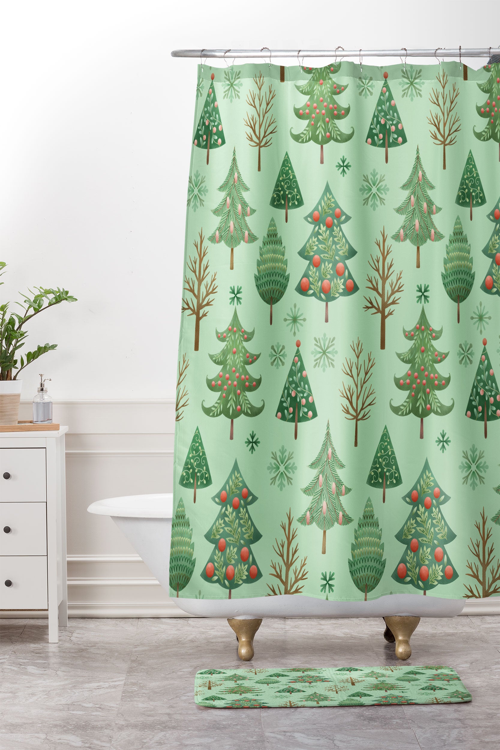 Pimlada Phuapradit Christmas trees snowflakes Shower Curtain And Mat