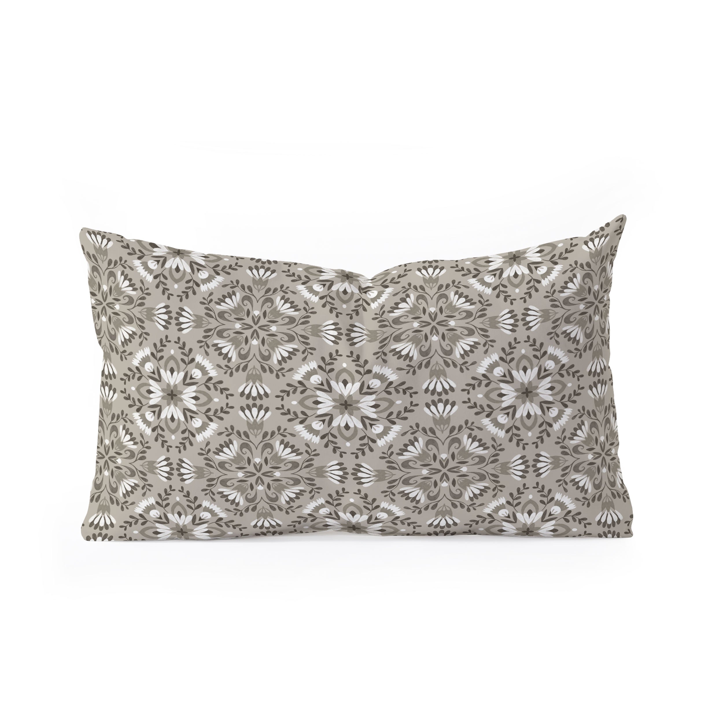 Pimlada Phuapradit Floral Tiles Gray Oblong Throw Pillow