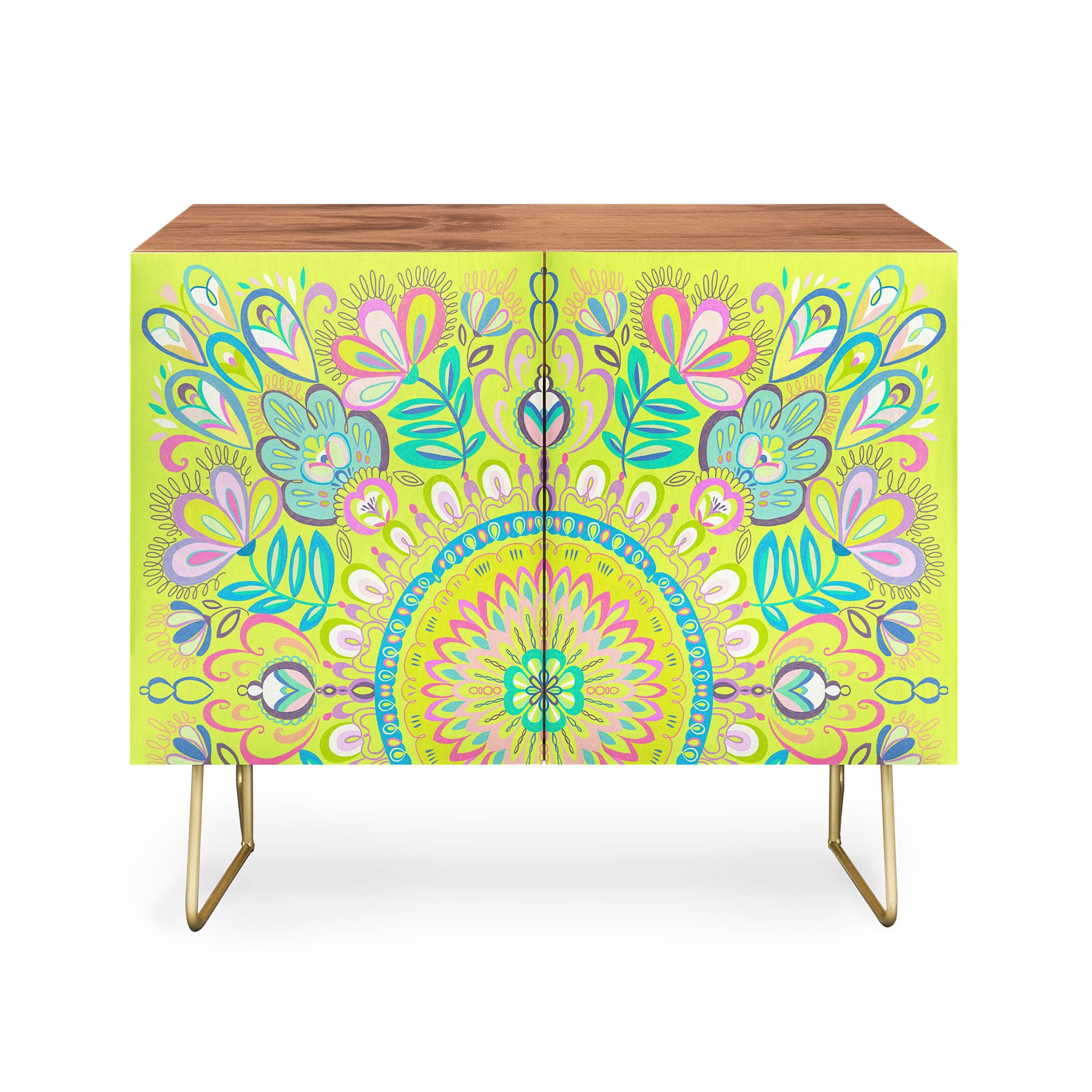 The Deny Designs credenza features crisp mid-century modern styling with an understated Baltic Birch cabinet and sleek, curved steel aston legs. Select from our array of curated designs to feature on the credenza doors and blend this versatile furniture staple into any decor. It can function as an office cabinet, entertainment unit or even a bar cart. It's available in either a warm, refreshingly natural finish or a premium, rich walnut veneer—allowing for a variety of design combinations. And the best part? Every purchase pays the artist who designed it—supporting creativity worldwide.