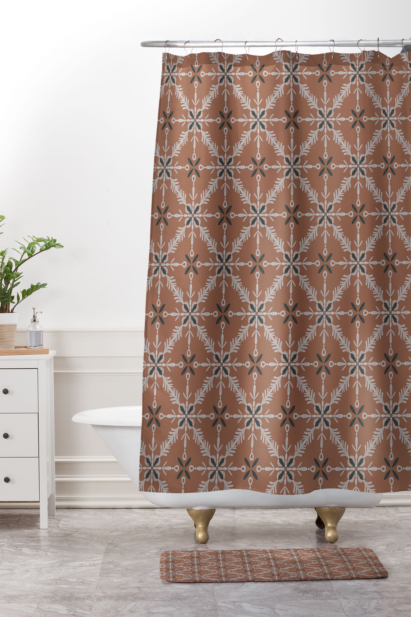 Pimlada Phuapradit Snowflake tile 1 Shower Curtain And Mat