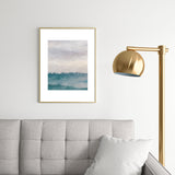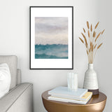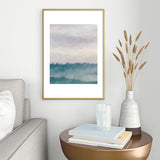 Rachel Elise Lavender Purple Sunset Teal Aqua Blue Ocean Waves Abstract Nature Painting Metal Framed Art Print