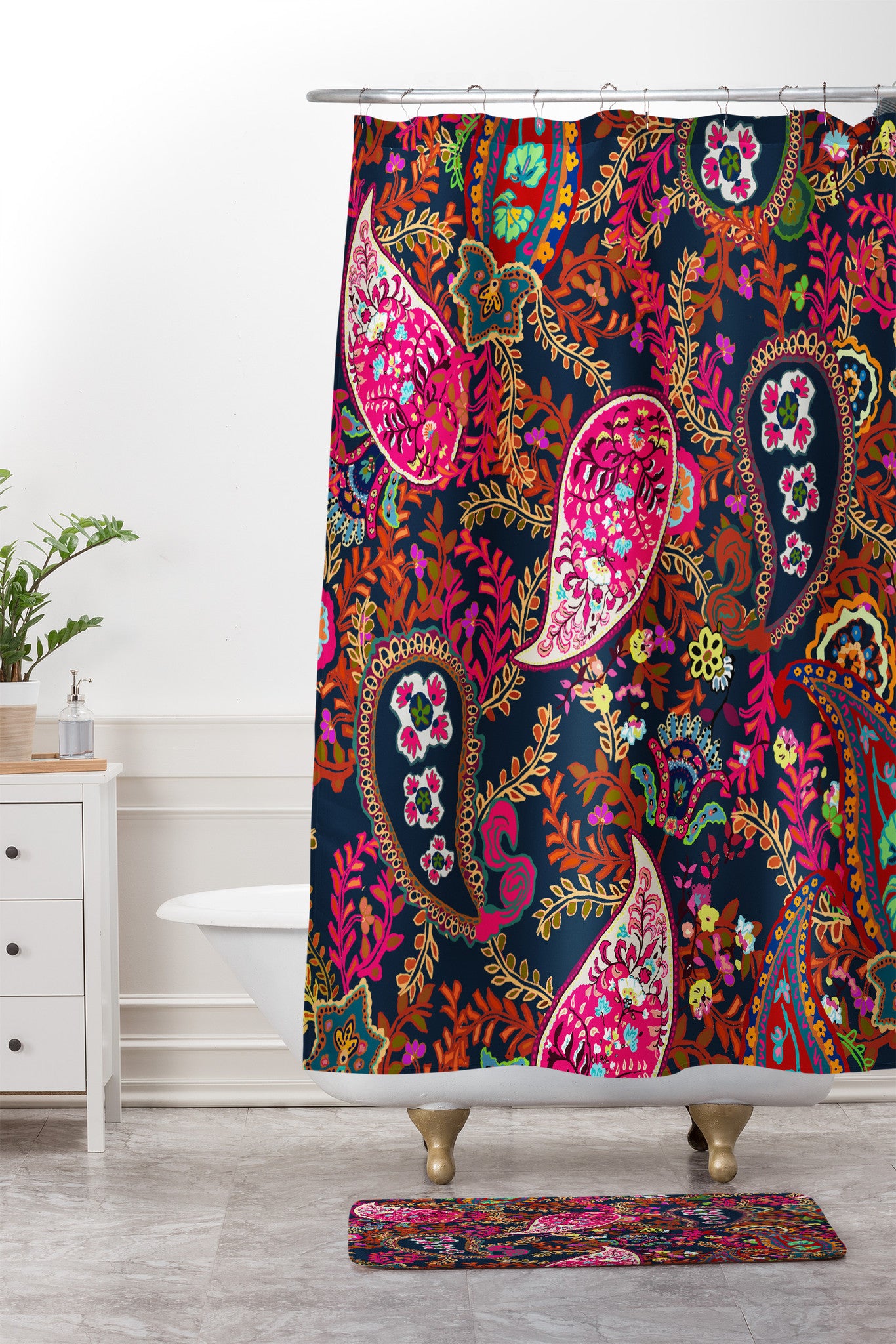 Rachelle Roberts Boho Paisley Shower Curtain And Mat