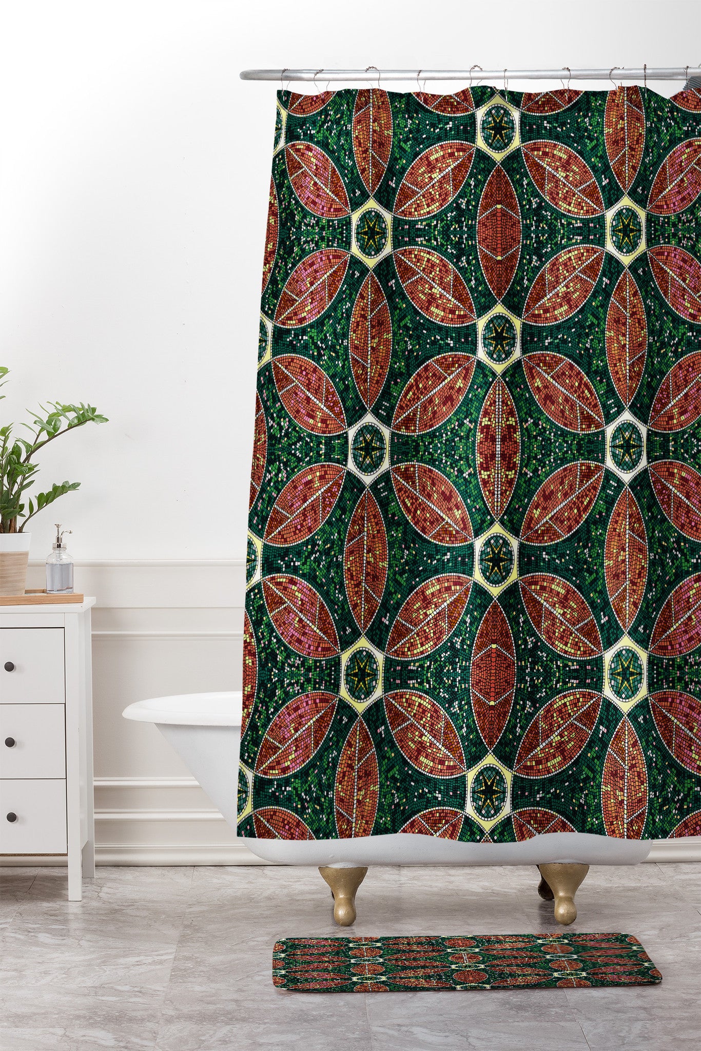 Raven Jumpo Jade Mosaic Shower Curtain And Mat