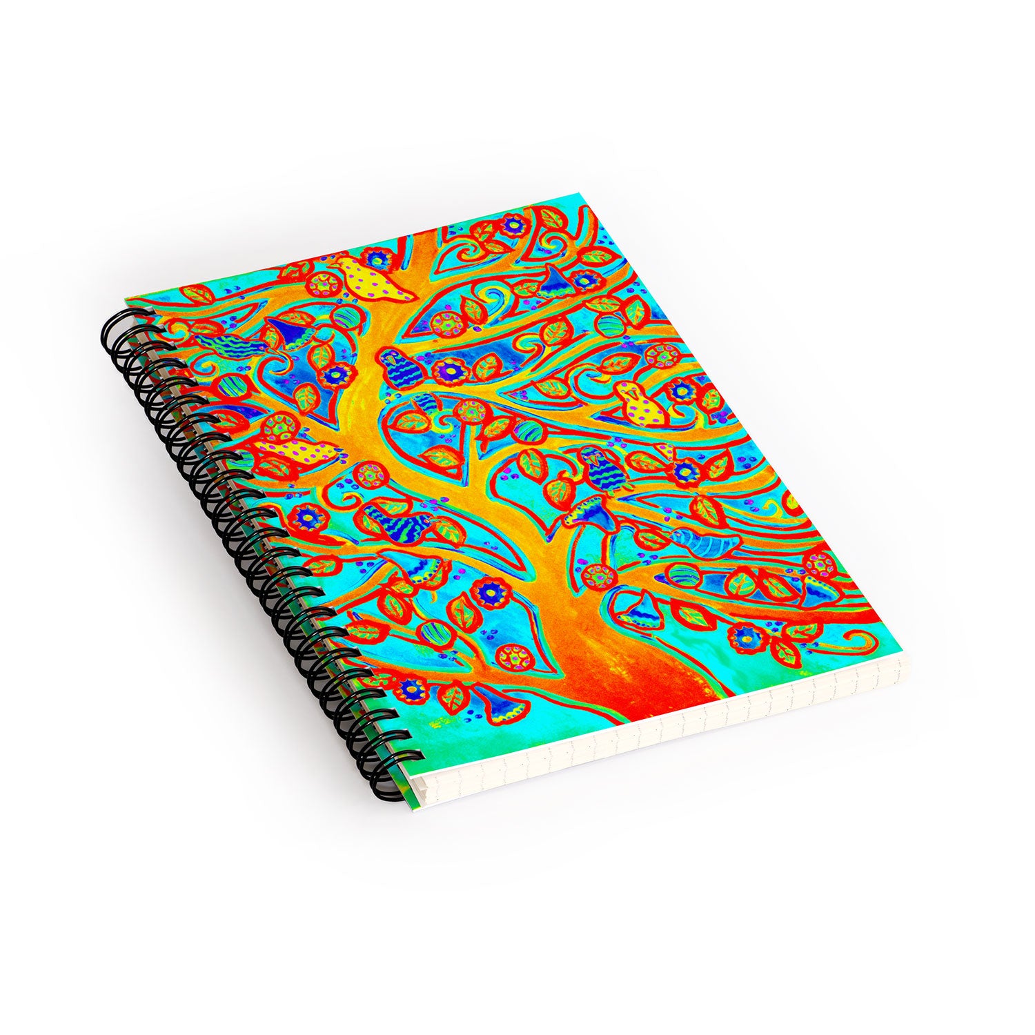 Renie Britenbucher Bird Tree Red Turquoise Spiral Notebook