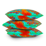 Renie Britenbucher Bird Tree Red Turquoise Throw Pillow