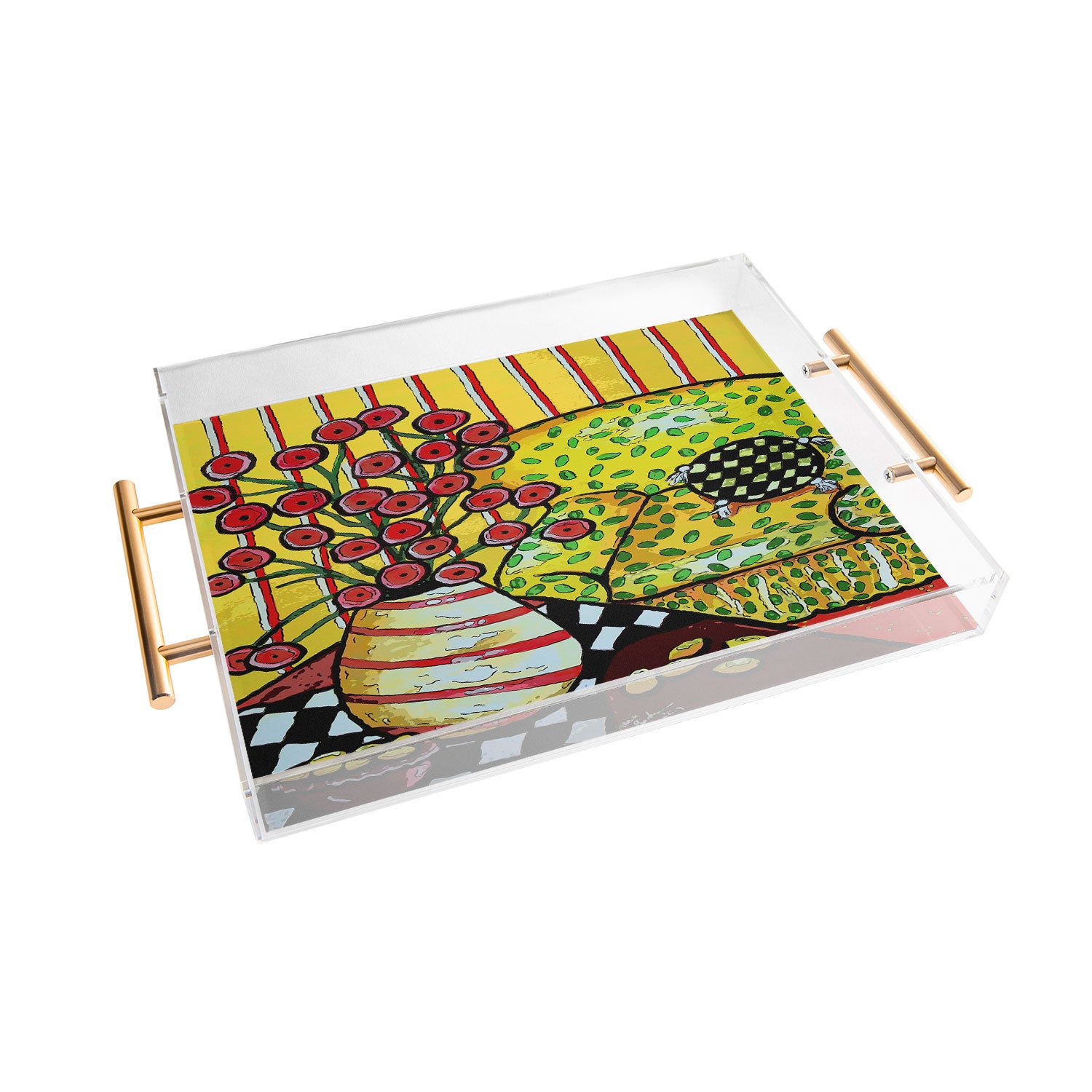 Renie Britenbucher Yellow Chair With Red Poppies Acrylic Tray