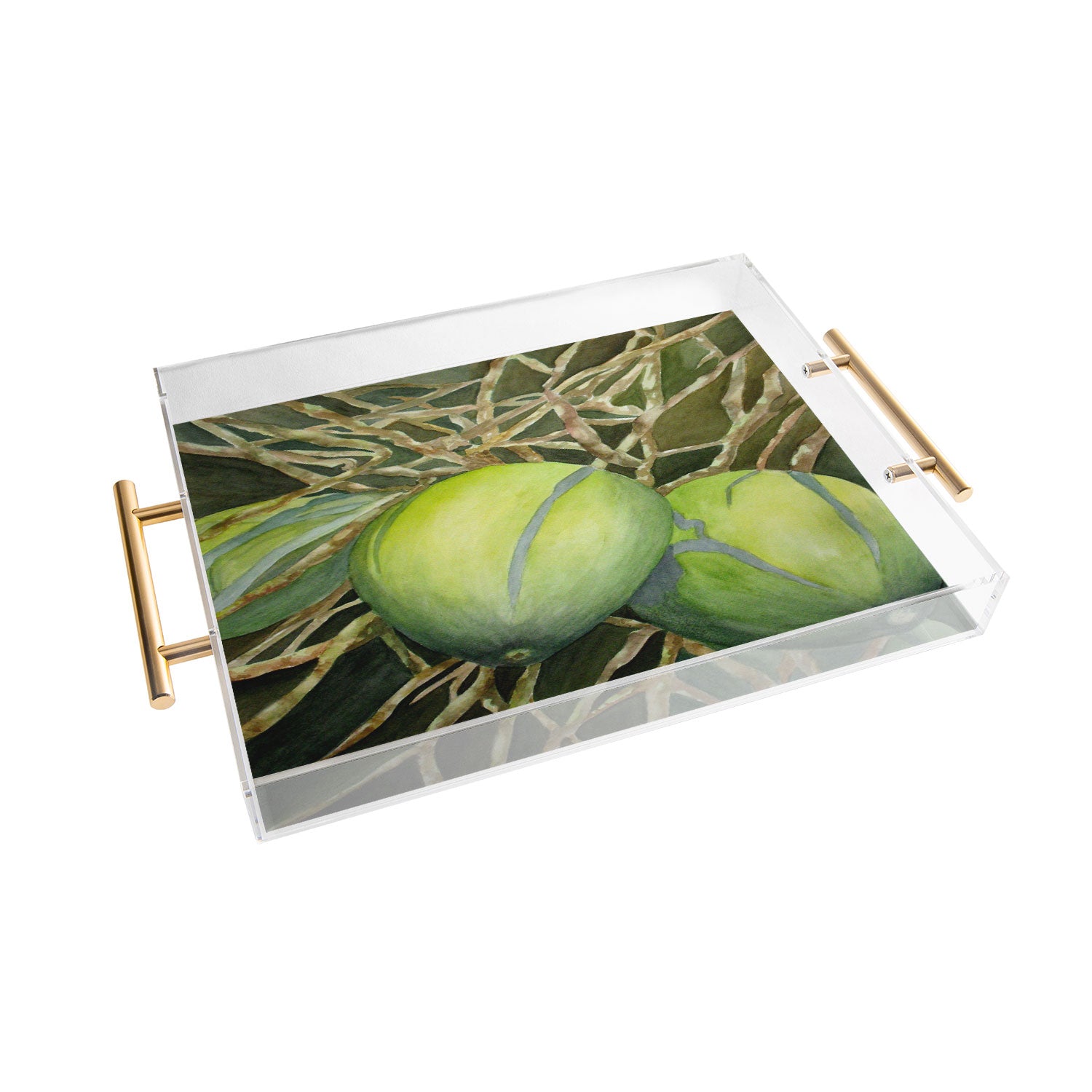 Tray chic. The Deny Designs acrylic trays come in a small and medium-size to accommodate all your countertop organizational needs. Featuring designs from our curated selection on the bottom panel, the acrylic trays can adapt to whatever decor style you love and the see-through side panels give them a modern flair. The medium-sized tray even comes with handles, allowing you to take it around the house for nail supplies or, dare we say, breakfast in bed! And the best part? Every purchase pays the artist who designed it—supporting creativity worldwide.