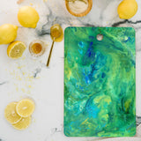 A must-have kitchen accessory any way you slice it. The Deny Designs cutting board is made from bamboo wood that won't look too heavy when integrated into your kitchen decor. Available in array of curated designs, the display side is printed with a satin finish that will pop when displayed on your counter or hung on the wall through the 1" handle. The prep side is a bamboo woodgrain that can be easily washed with a non-abrasive cloth. And the best part? Every purchase pays the artist who designed it—supporting creativity worldwide.