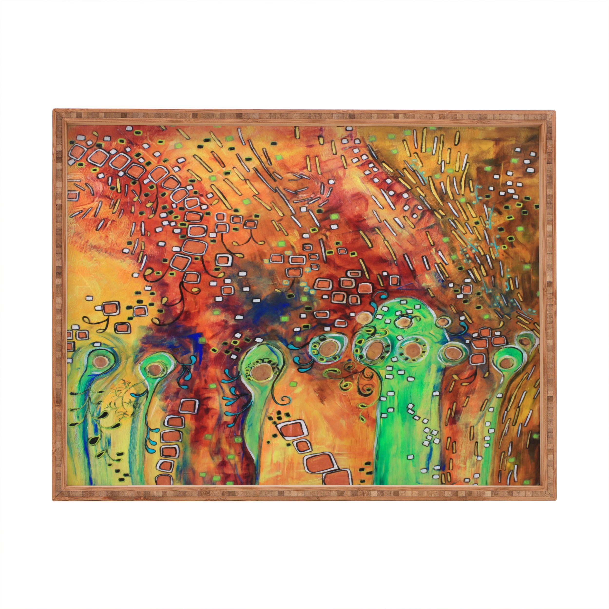 Style is served. The Deny Designs rectangular tray is crafted from 100% sustainable and eco-friendly bamboo with a satin finished display. Available in two sizes, these trays make the perfect decor accessory for wherever you need a little extra organization or as a serving platter for cheese spreads or breakfast in bed. Choose from our curated array of designs to match whatever your decor style may be. And the best part? Every purchase pays the artist who designed it—supporting creativity worldwide.