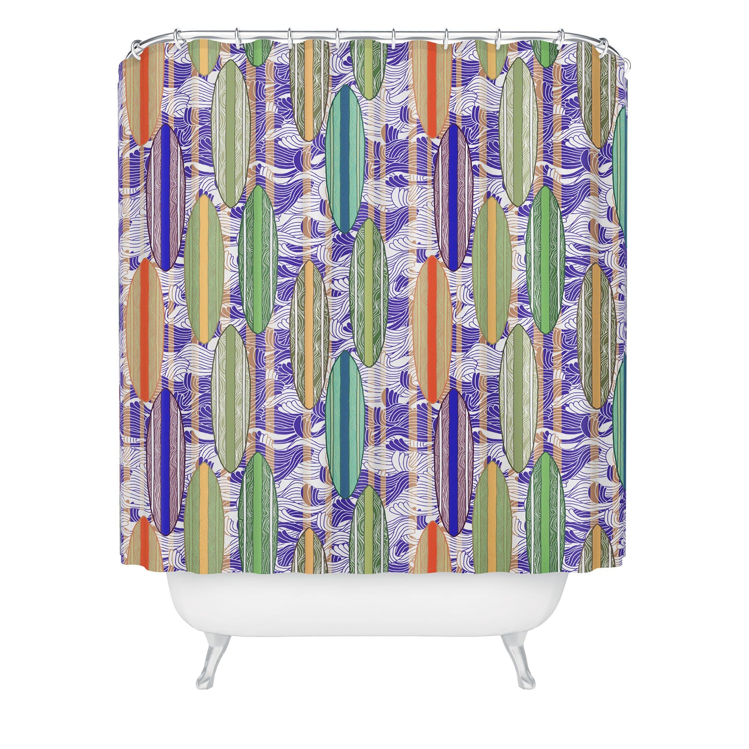Set the stage. The Deny Designs shower curtain is crafted from 100% woven polyester and makes the perfect backdrop for whatever your bathroom decor may be. Adding some design to your shower curtains is a great way to make a statement in a room known for presenting plenty of design challenges. The buttonhole openings along the top means that you're free to use any curtain rings or hooks you please. And the best part? Every purchase pays the artist who designed it—supporting creativity worldwide.