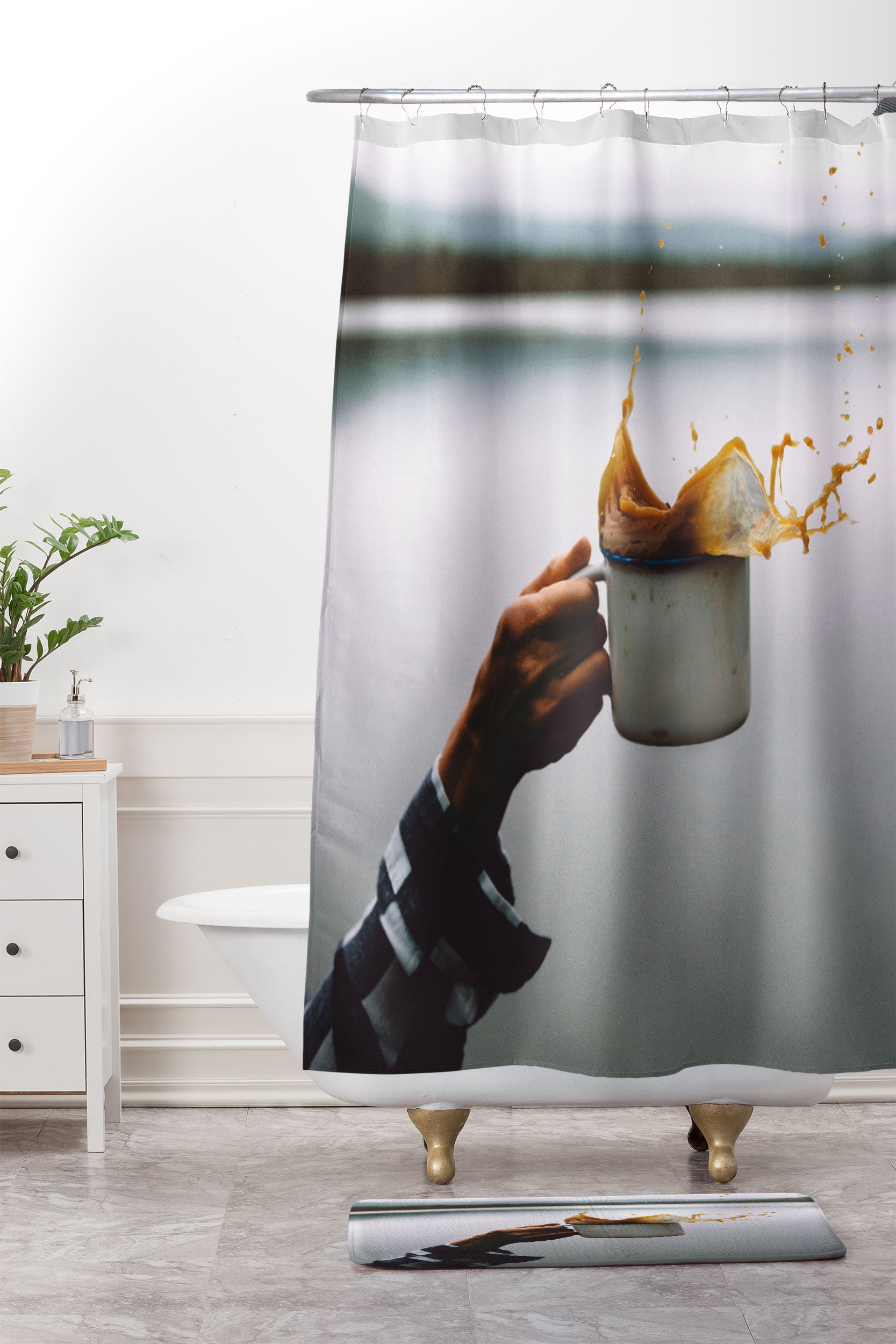 Rustic Bones Coffee Cheers Shower Curtain And Mat