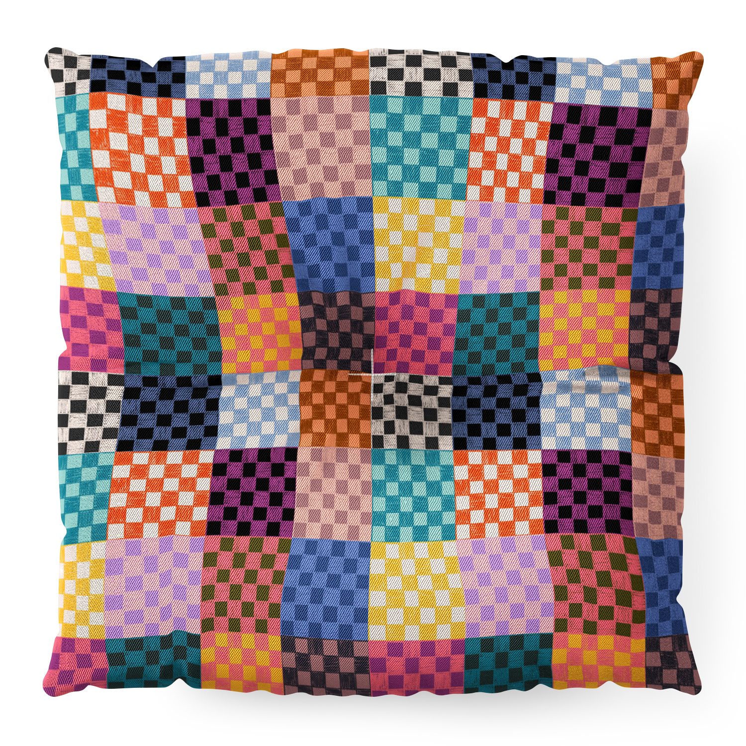 Schatzi Brown Alice Check Multi Floor Pillow Round