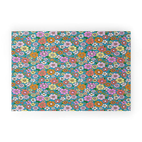 Schatzi Brown Betty Floral Turquoise Welcome Mat