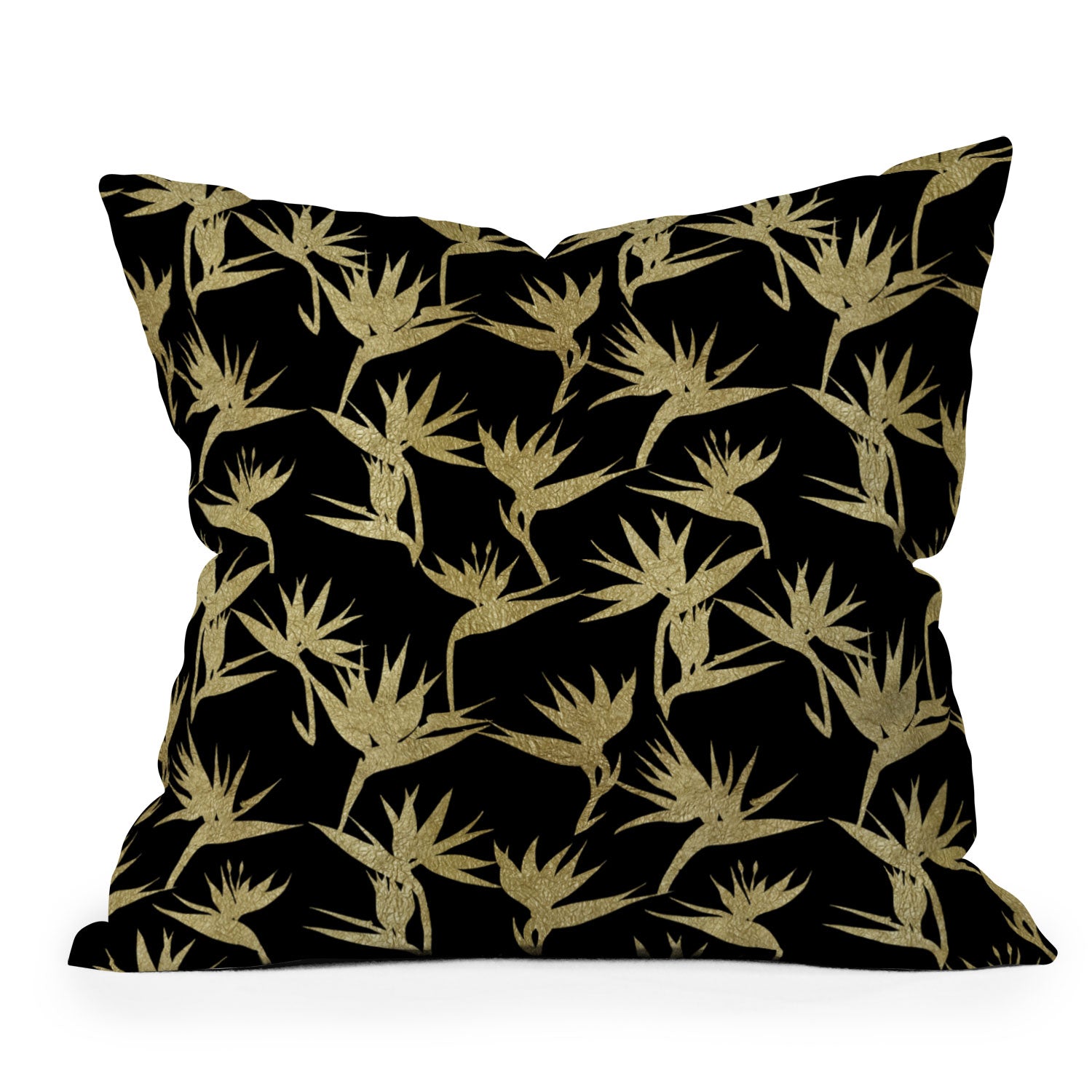 Schatzi Brown Bird of Paradise Black Gold Outdoor Throw Pillow