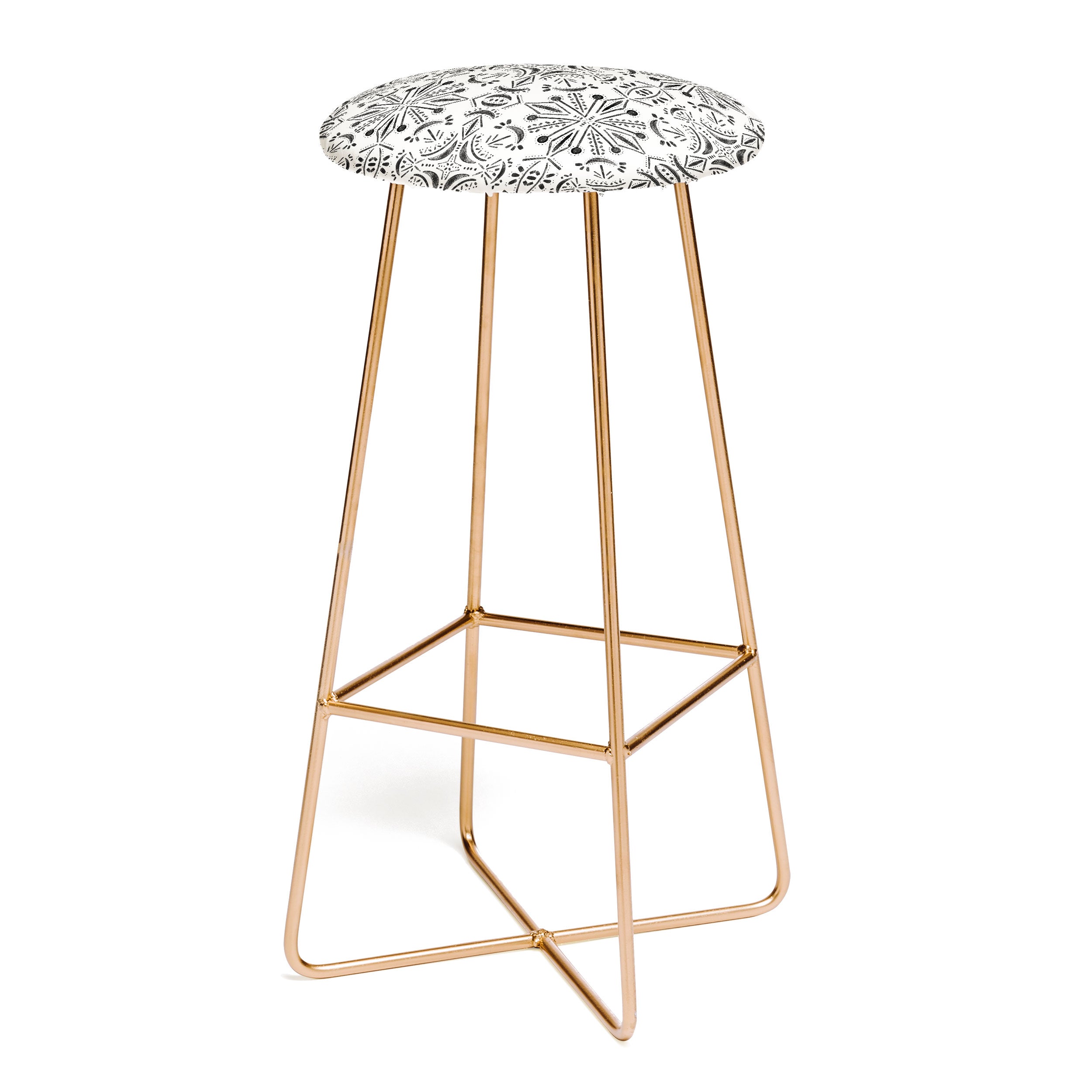 Saddle up, partner. The Deny Designs bar stool is the space-conscious and design-forward way to add seating to any space. Sleek, gently curved steel aston legs (available in black or gold) combine with the faux-leather upholstery for a modern yet unassuming stool. They feature a conveniently placed foot rest so your legs aren't left dangling, plus, you can select from our curated array of designs to match whatever your taste may be. And the best part? Every purchase pays the artist who designed it—supporting creativity worldwide.