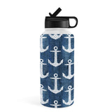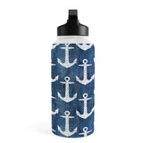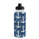 Schatzi Brown Chevron Anchor Denim Water Bottle
