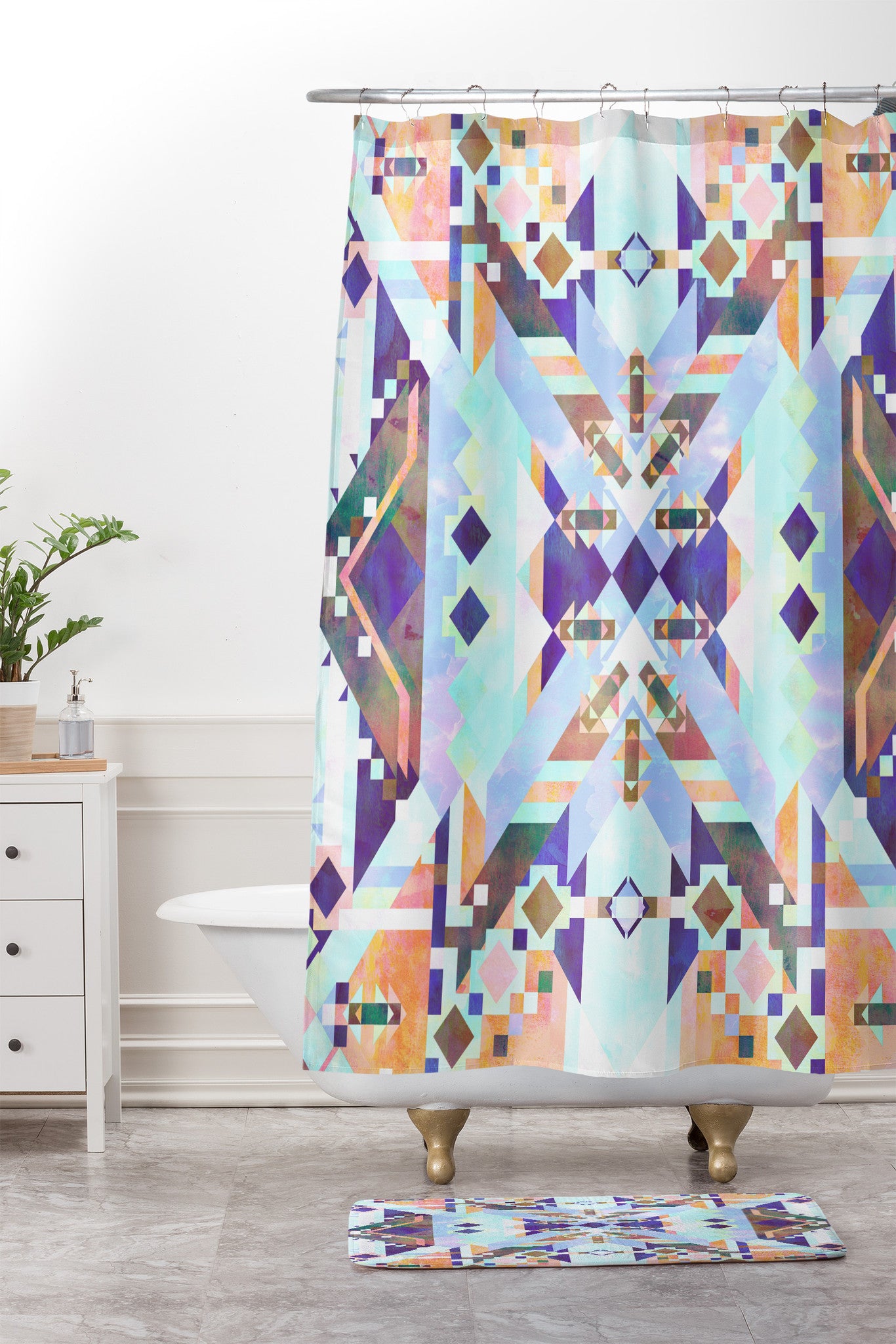 Schatzi Brown Chichen Itza Light Shower Curtain And Mat