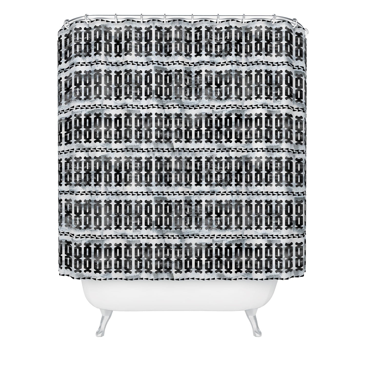 Set the stage. The Deny Designs shower curtain is crafted from 100% woven polyester and makes the perfect backdrop for whatever your bathroom decor may be. Adding some design to your shower curtains is a great way to make a statement in a room known for presenting plenty of design challenges. The buttonhole openings along the top means that you're free to use any curtain rings or hooks you please. And the best part? Every purchase pays the artist who designed it—supporting creativity worldwide.