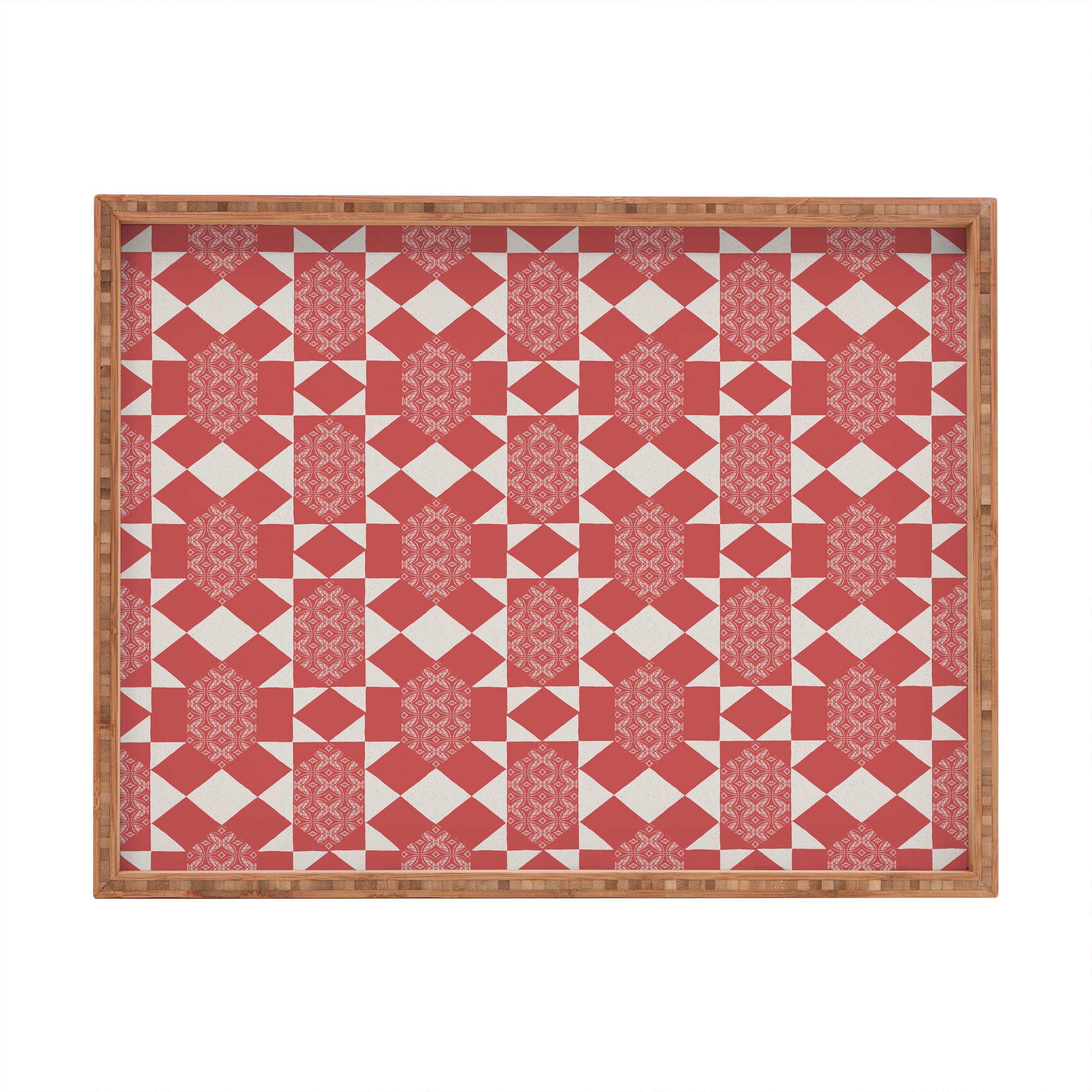 Schatzi Brown Mollie Rustic Quilt Muted Red Rectangular Tray