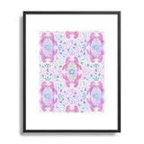 Schatzi Brown Unicorn Damask Pink Metal Framed Art Print