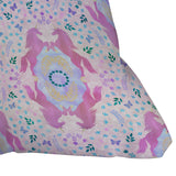 Schatzi Brown Unicorn Damask Pink Outdoor Throw Pillow