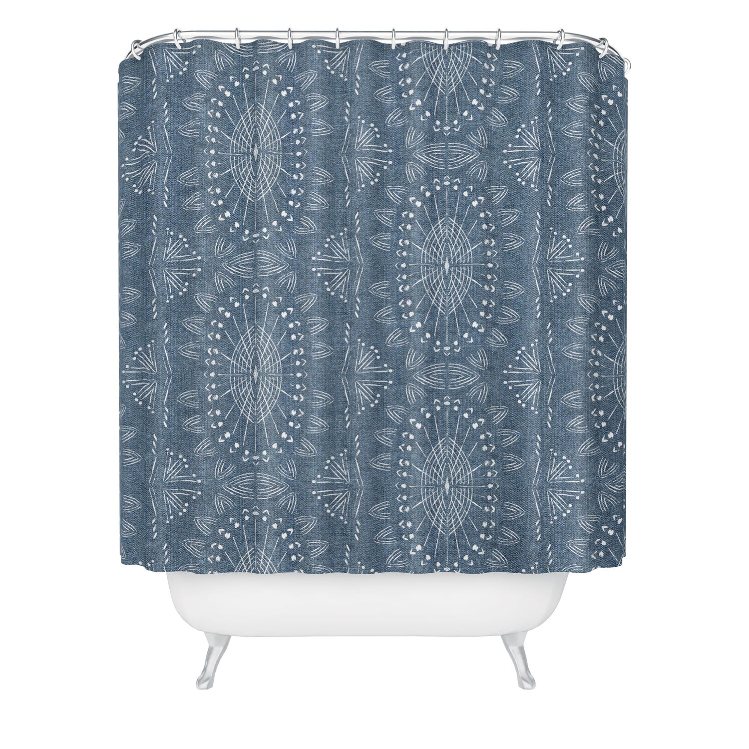 Set the stage. The Deny Designs shower curtain is crafted from 100% woven polyester and makes the perfect backdrop for whatever your bathroom decor may be. Adding some design to your shower curtains is a great way to make a statement in a room known for presenting plenty of design challenges. The buttonhole openings along the top means that you're free to use any curtain rings or hooks you please. And the best part? Every purchase pays the artist who designed it—supporting creativity worldwide.