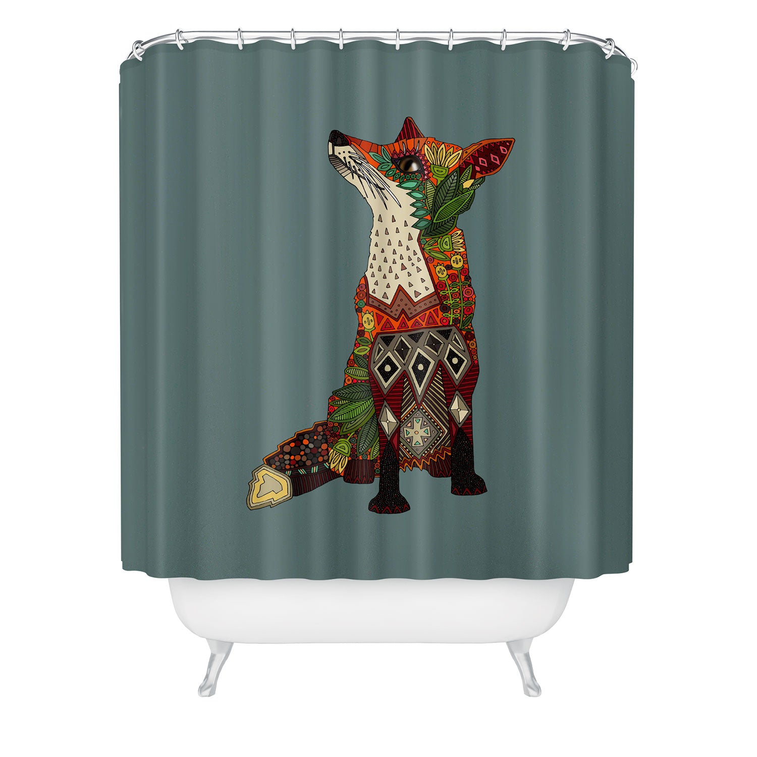 Set the stage. The Deny Designs shower curtain is crafted from 100% woven polyester and makes the perfect backdrop for whatever your bathroom decor may be. Adding some design to your shower curtains is a great way to make a statement in a room known for presenting plenty of design challenges. The buttonhole openings along the top means that you're free to use any curtain rings or hooks you please. And the best part? Every purchase pays the artist who designed it—supporting creativity worldwide.