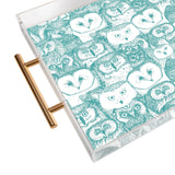 Sharon Turner just owls teal blue Acrylic Tray