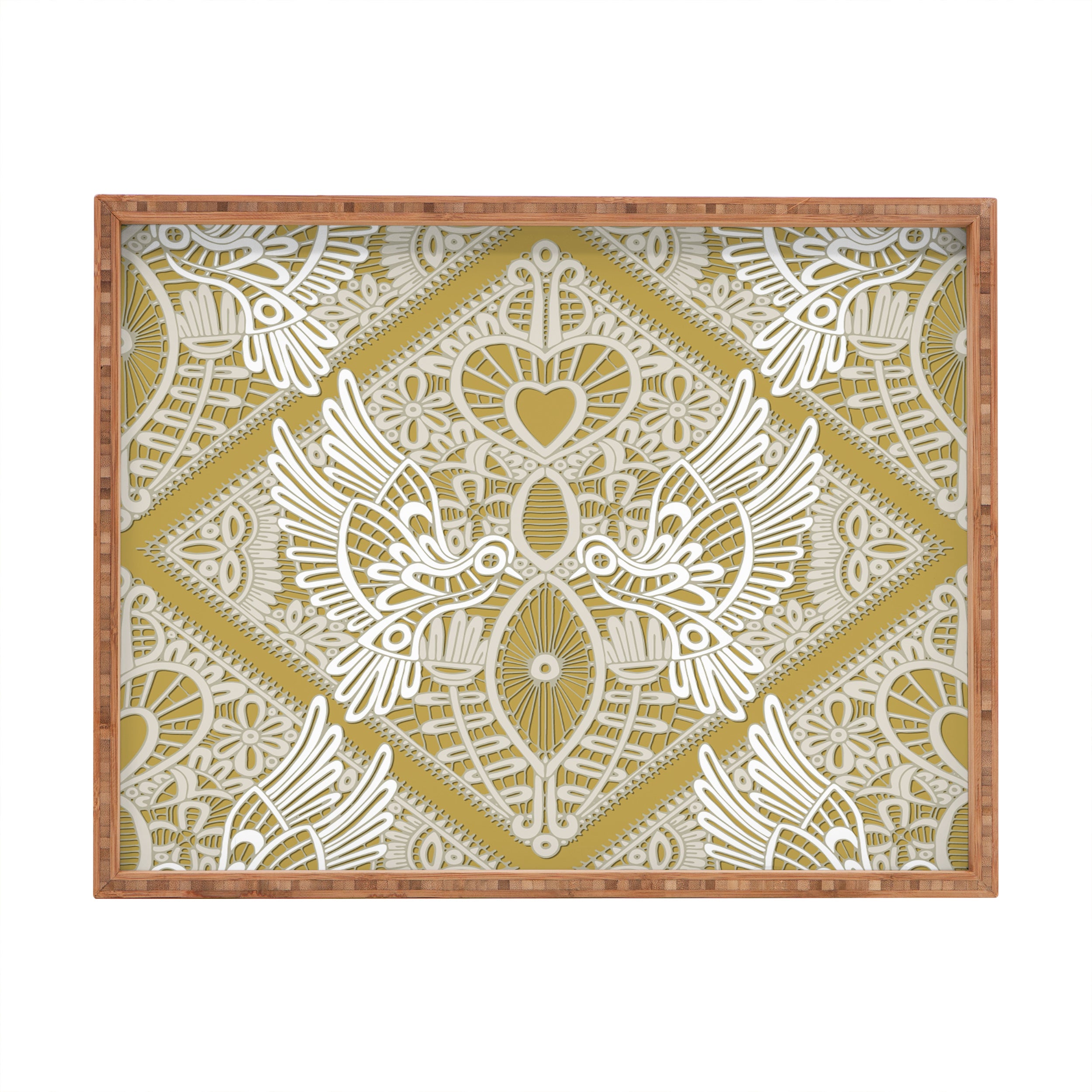 Sharon Turner love bird lace gold Rectangular Tray