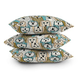 Sharon Turner owls limited gold blue Outdoor Throw Pillow