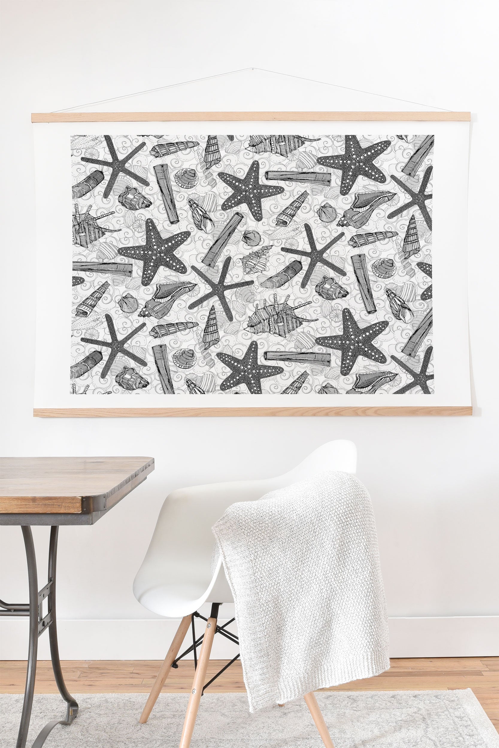 Sharon Turner seashells and starfish mono Art Print And Hanger
