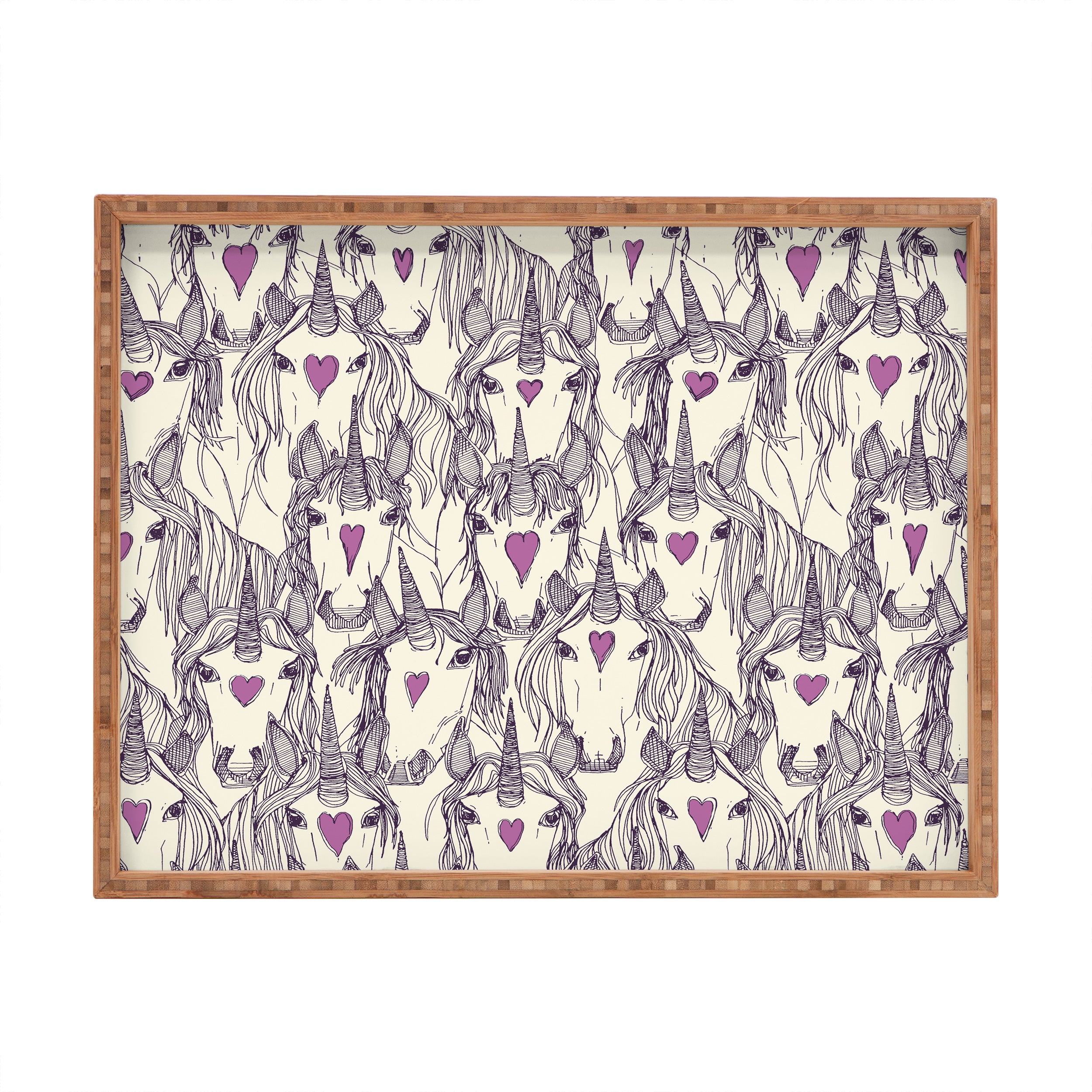 Sharon Turner unicorn love purple Rectangular Tray