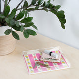 Tray chic. The Deny Designs acrylic trays come in a small and medium-size to accommodate all your countertop organizational needs. Featuring designs from our curated selection on the bottom panel, the acrylic trays can adapt to whatever decor style you love and the see-through side panels give them a modern flair. The medium-sized tray even comes with handles, allowing you to take it around the house for nail supplies or, dare we say, breakfast in bed! And the best part? Every purchase pays the artist who designed it—supporting creativity worldwide.